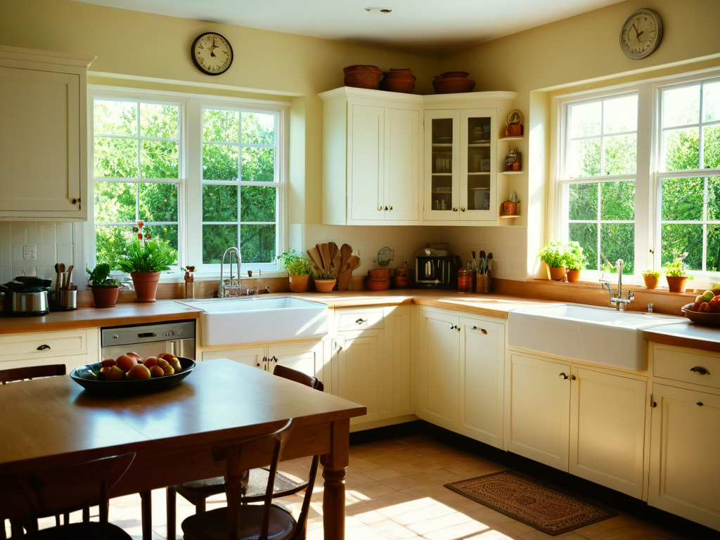 美式现代风格的厨房设计应以开放性和实用性为主,常见的元素包括岛台、悬挂式储物架等。用材上,可以选择白色或浅色的橱柜,搭配不锈钢电器,既显干净又现代。同时可以通过一些个性化的装饰,如复古风的餐具,来增加空间的氛围。