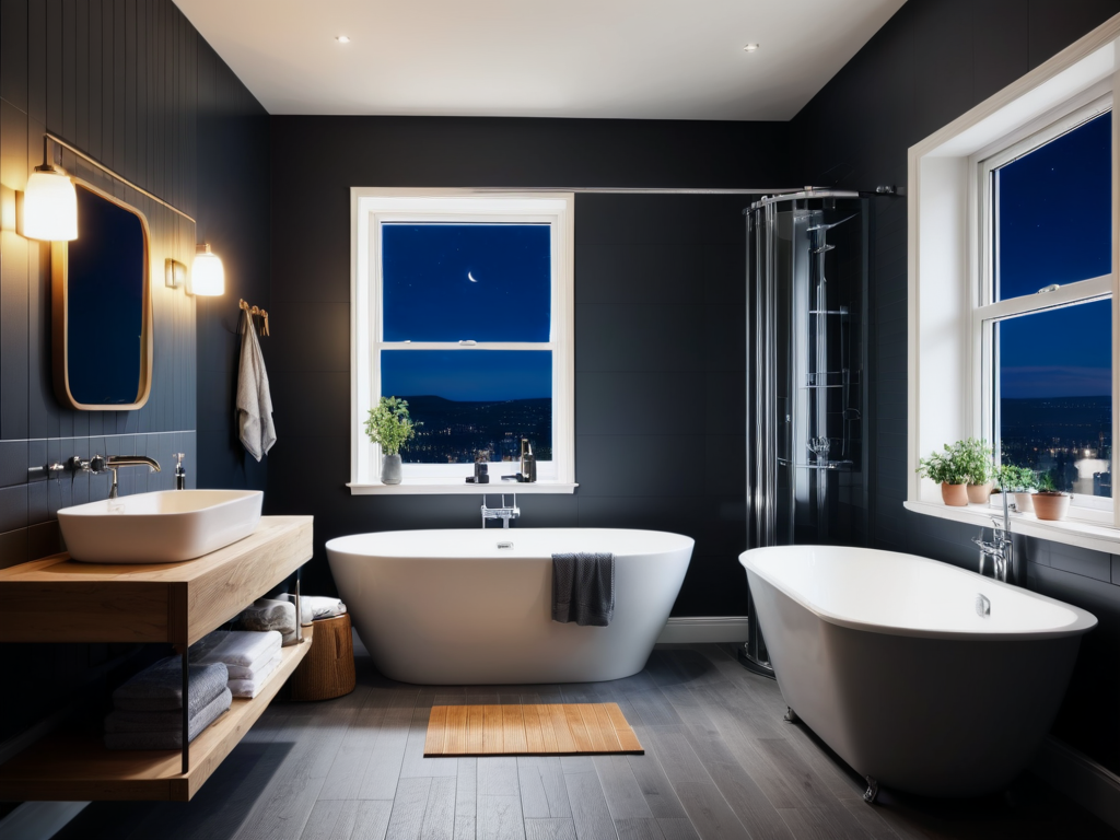 在美式浴室中,照明设计至关重要。通常建议采用多种光源的组合,包括主灯、壁灯和镜前灯。主灯应提供足够的整体照明,壁灯则为局部区域提供柔和的光线,而镜前灯则增强使用时的清晰度,以便于日常护理和化妆。