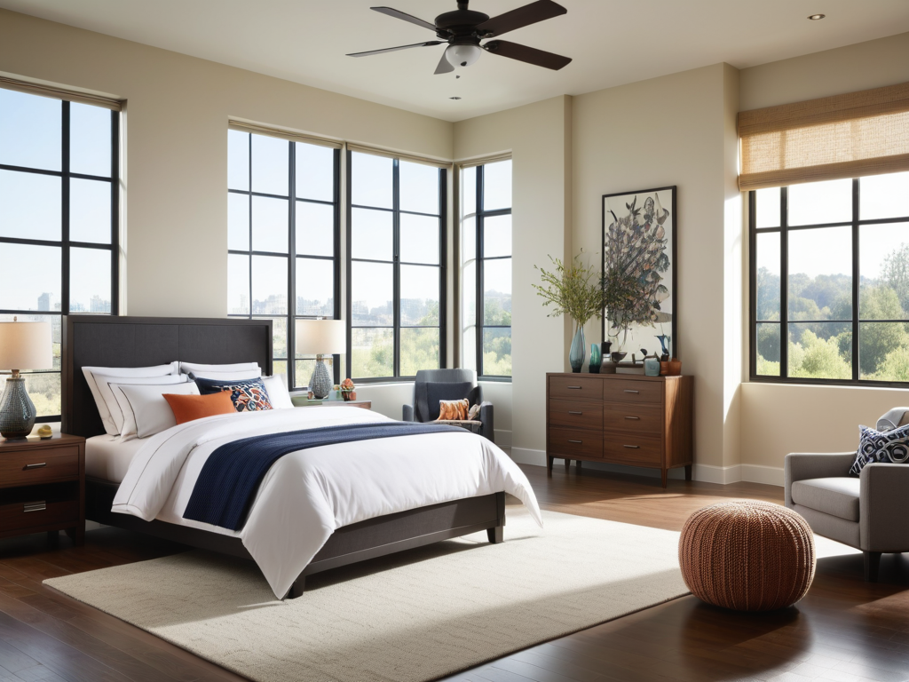 家具布局应根据房间的形状和大小来设计。通常,床应放置在卧室的中心位置,床头靠墙,以确保安全感。书桌可以靠窗放置,确保良好的光线。此外,衣柜最好设在角落,以节省空间并保持整洁。