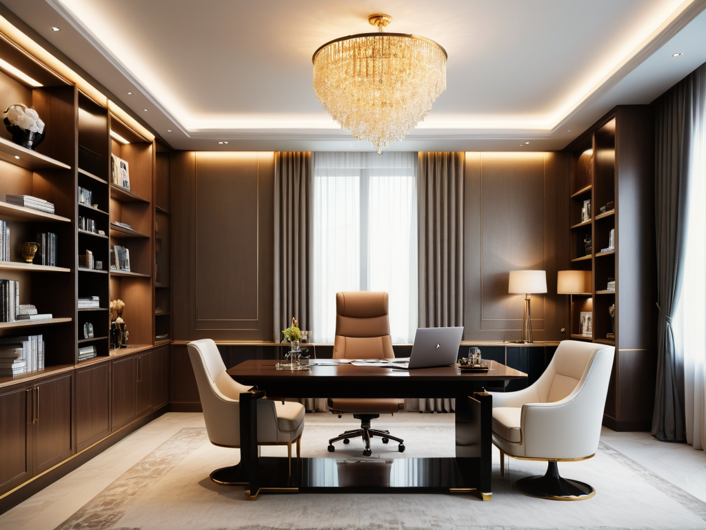 4. **装饰品**:在墙面和桌面上可以添加一些艺术画作、雕塑或花卉装饰,提升房间的艺术气息。