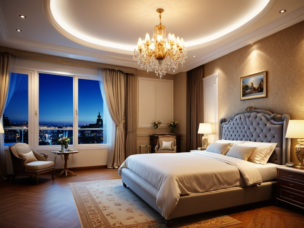 照明设计在欧式风格中尤为重要,应选择华丽的吊灯和壁灯。光源要柔和,避免刺眼。灯具的材质可选用水晶或金属,造型应有装饰性,以增强空间的奢华感和层次感。