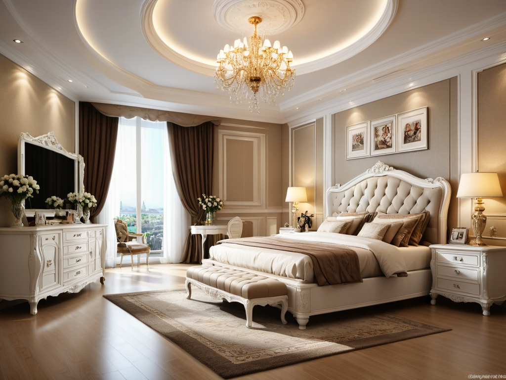 1. **色彩运用**:欧式风格通常采用柔和的色调,如米色、浅灰、淡蓝等,营造出温馨的氛围。同时,金色、银色等金属色的点缀则增添了奢华感。
