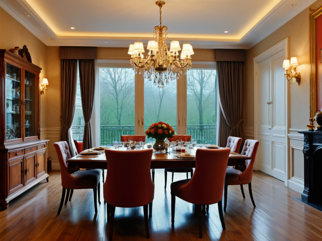 欧式风格的照明设计常常使用华丽的吊灯、壁灯和台灯,造型优雅且富有装饰性。照明的选择应注重光源的色温,建议使用暖色调的灯光,营造出舒适的氛围。同时,合理的灯光布局能有效提升空间层次感。