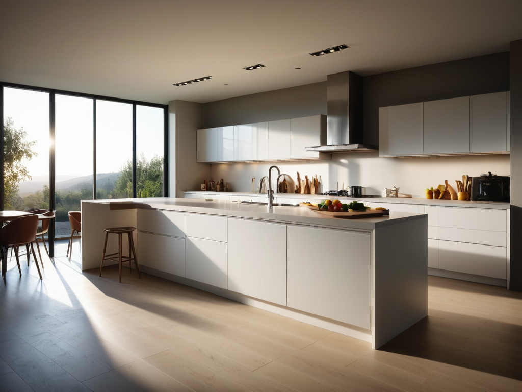 地面材料建议使用木地板或石材,颜色以浅色为主,能够提高空间的亮度和通透感。木地板能够带来温暖的氛围,而石材则显得更加冷静与现代。