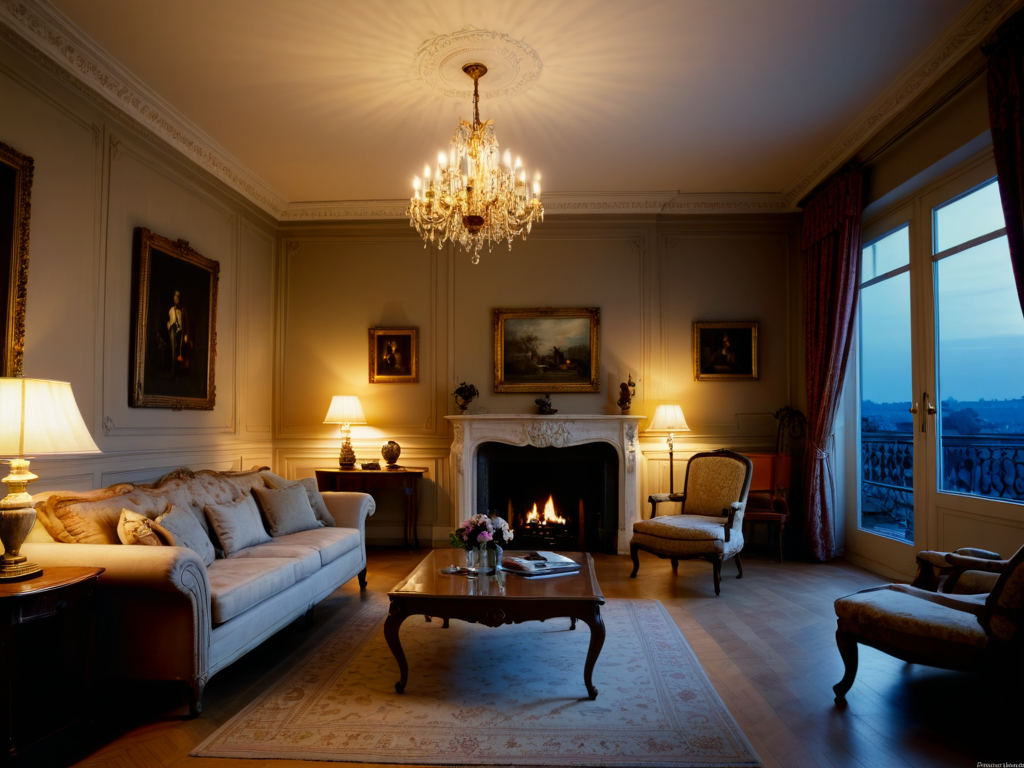 常用的装饰元素包括水晶灯、古典油画、花卉图案、家具雕刻等。水晶灯不仅提供照明,还能成为空间的焦点;古典油画则能提升空间的文化品位;花卉图案则可以通过壁纸或布艺来展现,营造出一种美丽而自然的氛围。