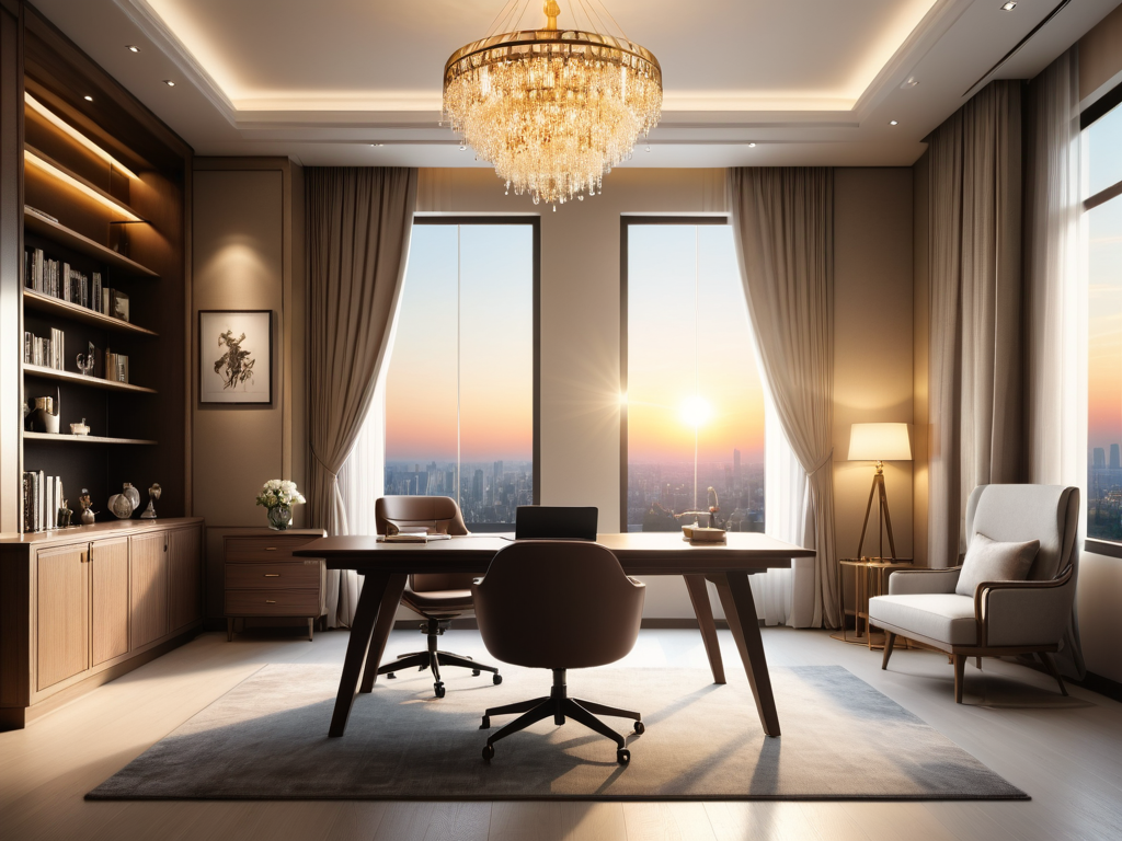 照明设计在欧式书房中非常重要,通常采用多层次的照明方式。可以使用吊灯作为主光源,增加空间的华丽感;同时,书桌上可放置台灯,提供局部照明。在墙面上安装壁灯,可以营造出温馨的氛围。此外,窗帘的选择也很重要,厚重的布料可以调节光线,保护隐私。