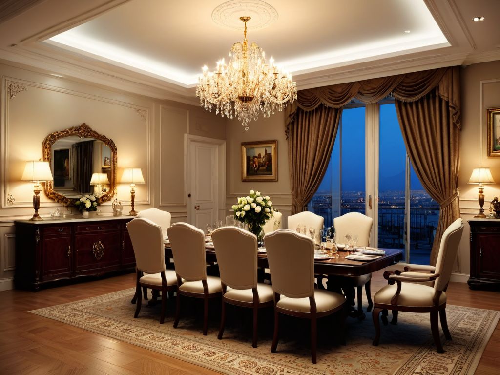 5. **装饰品**:在墙面和家具上添加一些装饰品,如油画、相框、花瓶等,可以增加空间的层次感和个性化。选择与整体风格相符的装饰品,避免过于繁杂。
