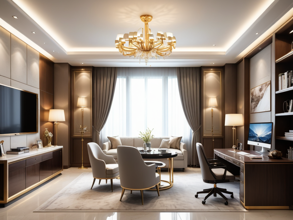 照明设计在欧式主卧中同样重要。通常会选择水晶吊灯或古典风格的壁灯,既能提供充足的光线,又能成为空间的亮点。灯具的选择应与整体风格相协调,避免使用过于现代或简约的设计,以免破坏欧式风格的整体感。