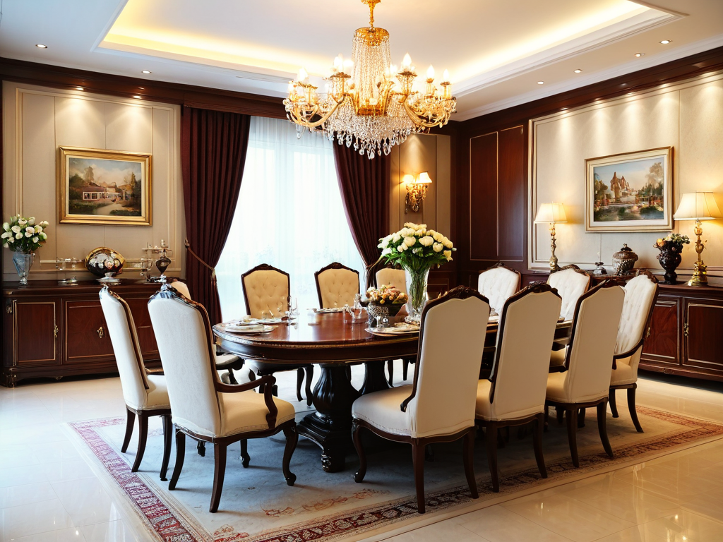 软装可以通过窗帘、靠垫、地毯等来提升欧式复古风格的效果。窗帘可以选择厚重的绒布,颜色应与整体风格协调;靠垫则可以使用刺绣或印花的布料,增加细节;地毯可以选用传统图案,营造温暖的氛围。