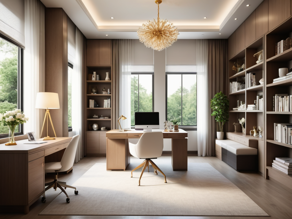 在空间布局上,轻奢风格强调开放感与流动性。建议使用简洁的家具和合理的空间分隔,避免拥挤的感觉。同时,确保每个区域的功能明确,比如休闲区、阅读区和用餐区可以通过家具的排列或地毯的划分来进行区分。保留一定的空白区域,可以让整个空间显得更为宽敞和舒适。