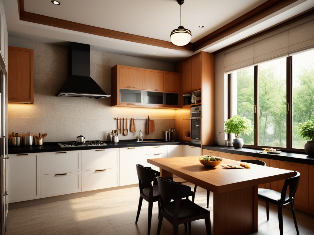 厨房照明应综合考虑功能性与美观性。一般建议使用多层次的照明设计,包括主照明、工作台照明和氛围照明。主照明可以选择吸顶灯,确保整个厨房明亮;工作台照明可安装在橱柜下方,方便切菜等操作;氛围照明可以使用壁灯或吊灯,增加厨房的温馨感。