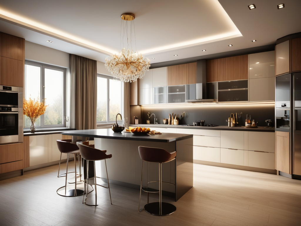 美式风格的厨房通常强调功能性与美观并存。可以选择开放式布局,使厨房与餐厅或客厅相连,增强互动性。柜体选择白色或浅色调,以营造明亮感,同时可以使用木质元素和复古风格的五金配件来增添温馨感。台面可以选择大理石或复合材料,确保耐用和易清洁。