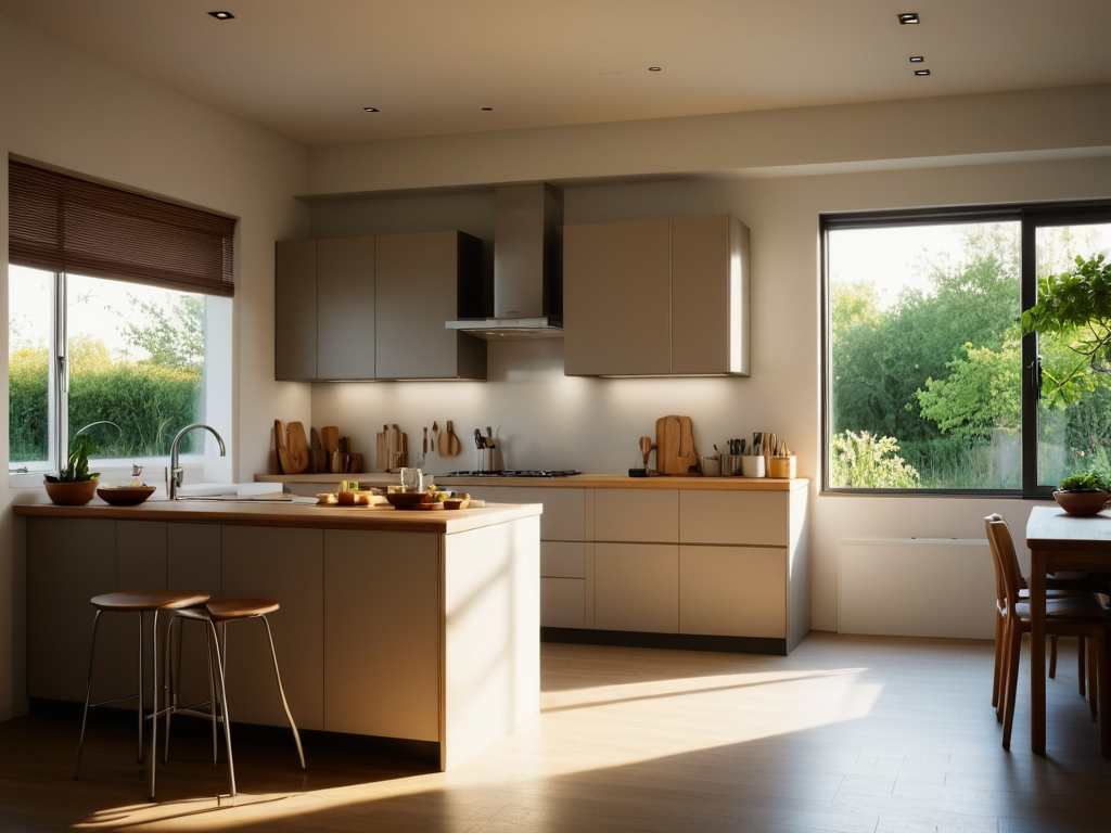 照明设计应根据不同空间的功能需求来选择。在客厅和餐厅,可以使用单体吊灯或多盏灯具组合,营造温馨氛围;而在卧室中,可以选择床头灯和阅读灯,以提供柔和的光线。厨房需要明亮的灯光,确保烹饪安全;书房应选择可调节亮度的台灯,适应不同的阅读需求。此外,利用自然光也是重要的一环,合理布置窗户以最大化自然光的引入。