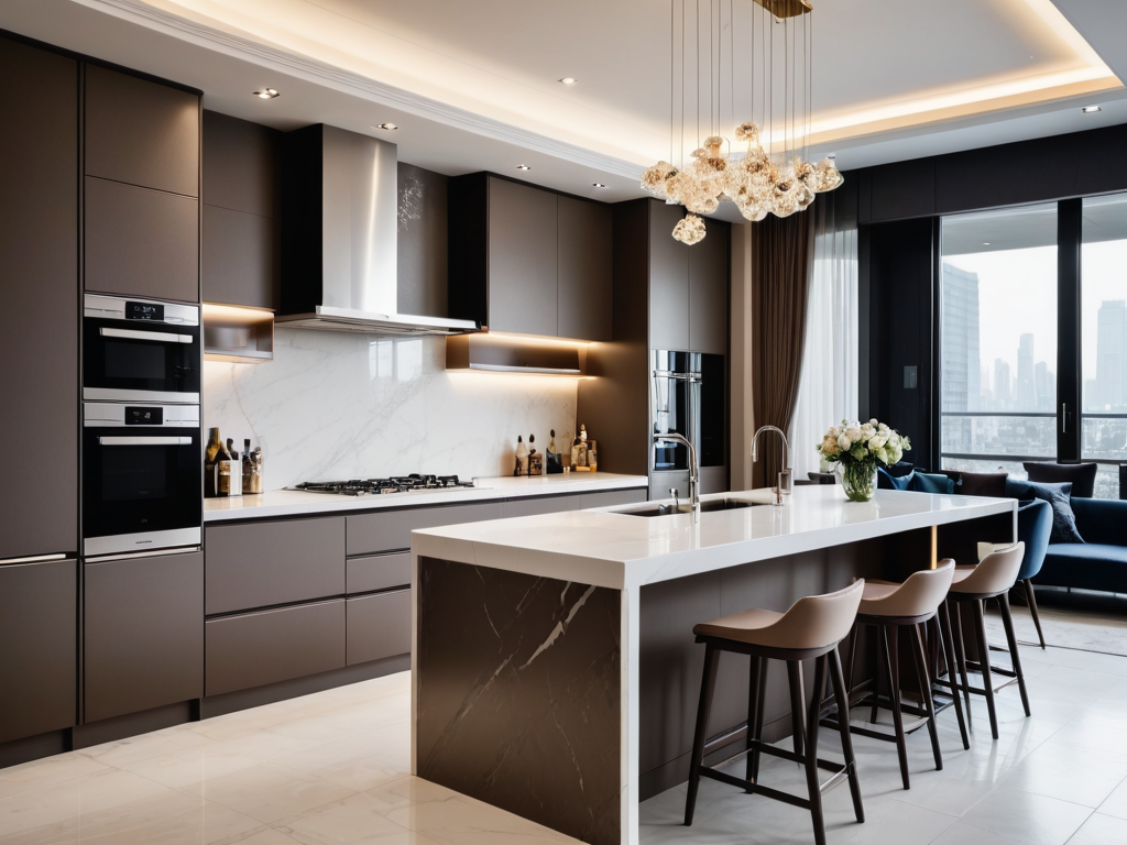 厨房设计应考虑操作动线、通风和储物空间的合理性。应选择耐油污的材料,合理配置橱柜和台面,确保厨房整体的功能性和美观性。此外,通风设备要足够,保持空气流通。