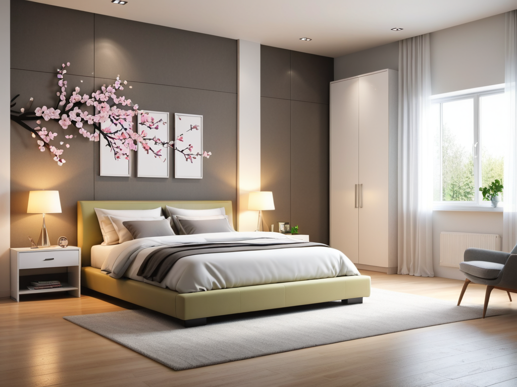 在现代简约风格中,背景墙的装饰应尽量简洁。可以选择一些现代艺术画作、黑白摄影作品或极简风格的挂件。此外,可以使用大面积的镜子,既能反射光线,增加空间感,又能作为装饰元素。