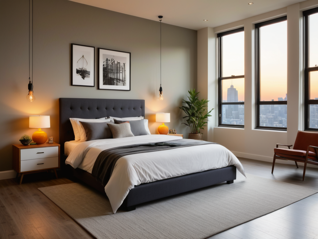 卧室照明设计应考虑氛围、功能与美观。一般来说,主灯应选择柔和的光线,以营造温馨氛围;而床头灯可以选择可调光的设计,以方便阅读。同时,注意灯具的样式与整体装修风格相匹配,避免风格不协调。