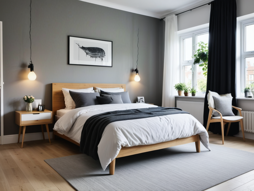 美式风格的装饰品常见包括复古的壁灯、艺术画作、手工艺品等。布艺装饰如靠垫和窗帘可以选择具有田园风格的花纹,增添房间的温馨感。
