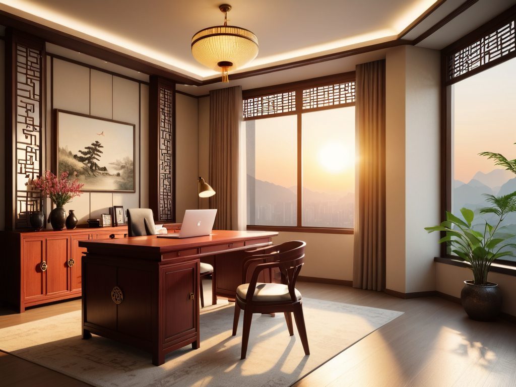 4. **家具选择**:中式家具通常以实木为主,造型简洁大方,注重工艺与细节。红木、榆木等材质的家具,不仅耐用,还能散发出自然的香气,给家居环境增添了一份温馨。