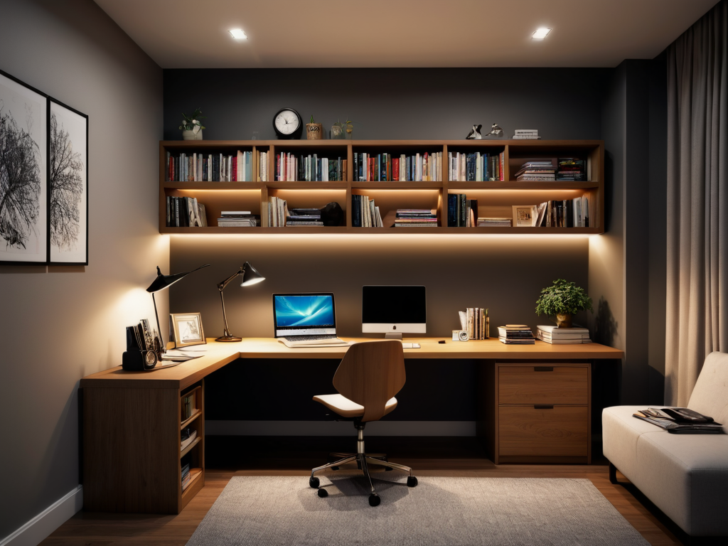 设计天花板照明系统时,可以考虑使用多种灯具组合,如吊灯、壁灯以及嵌入式灯具等。首先确定每个区域的主要用途,例如阅读区可以选择较为柔和的灯光,而工作区则需要更明亮的照明。同时,注意灯光的分布,避免出现阴影,以确保每个角落都能得到充分照明。