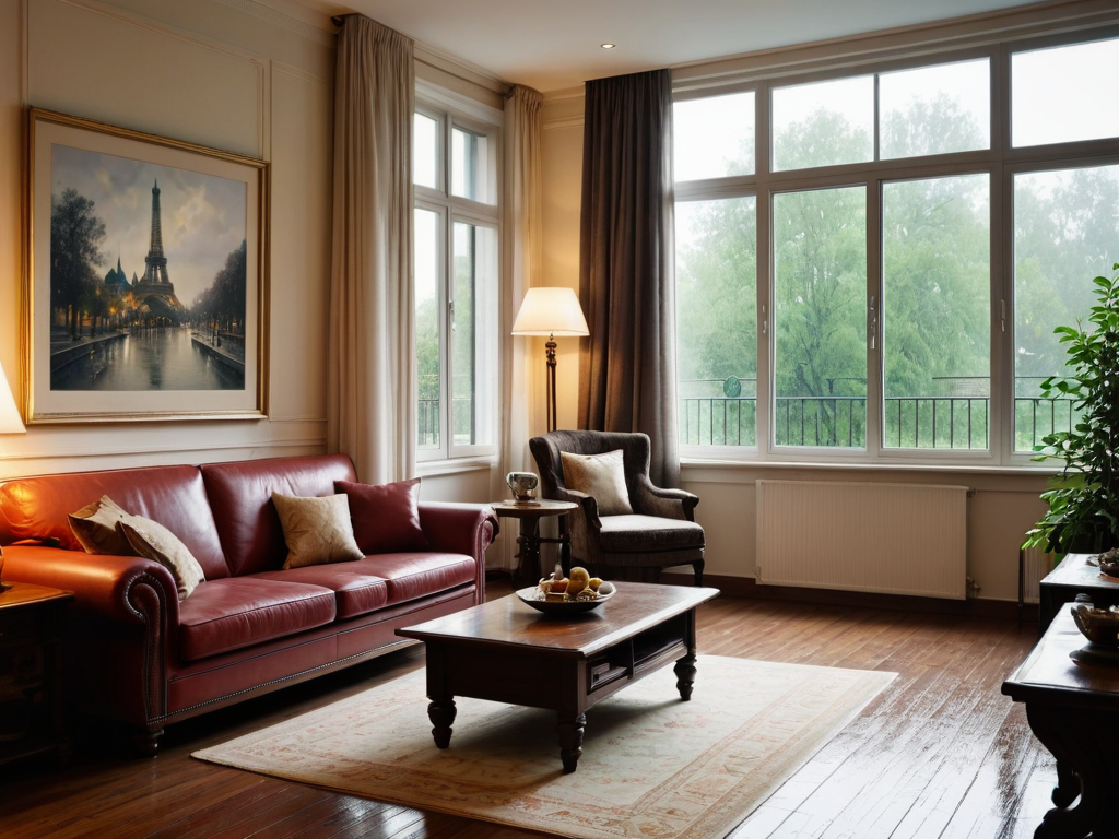 在新中式风格中,采光设计至关重要。可以通过大面积的窗户设计引入自然光,使室内明亮。同时,应注意窗帘的选择,轻薄的窗帘能够有效调节光线,保持隐私而又不影响采光。此外,在室内可以适当增加反光面,如镜子、亮面家具等,能够增强室内光线的反射,提升整体的明亮度。