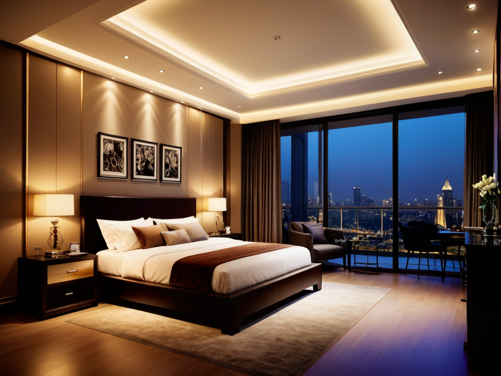 书房的照明设计十分重要,首先应考虑自然光的引入,尽量选择靠窗的位置布置书桌,以获取充足的日光。人工照明方面,建议使用多种光源进行组合,如主灯、台灯和壁灯等,主灯可以提供整体照明,而台灯则提供局部照明,方便阅读和写作。此外,灯光的色温也要选择合适,暖色调灯光可以营造温馨的氛围,冷色调灯光则适合集中精力。
