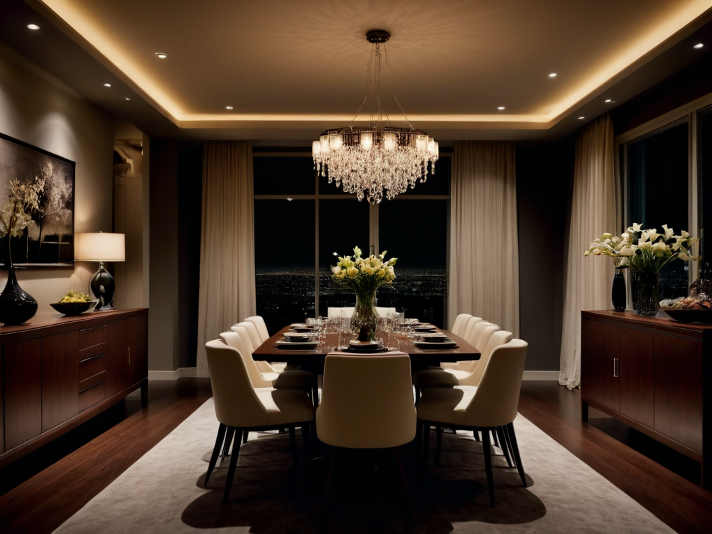 照明设计应考虑功能性和美观性。首先,主要区域如客厅、餐厅和厨房等应选择明亮的主灯,同时配合辅助灯具,形成层次感。其次,卧室应使用柔和的灯光,以创造良好的休息环境。此外,局部照明可以用来突出艺术品或植物,增加空间的表现力。最后,使用调光器可以根据不同的活动需求调节光线强度,提高使用的灵活性。