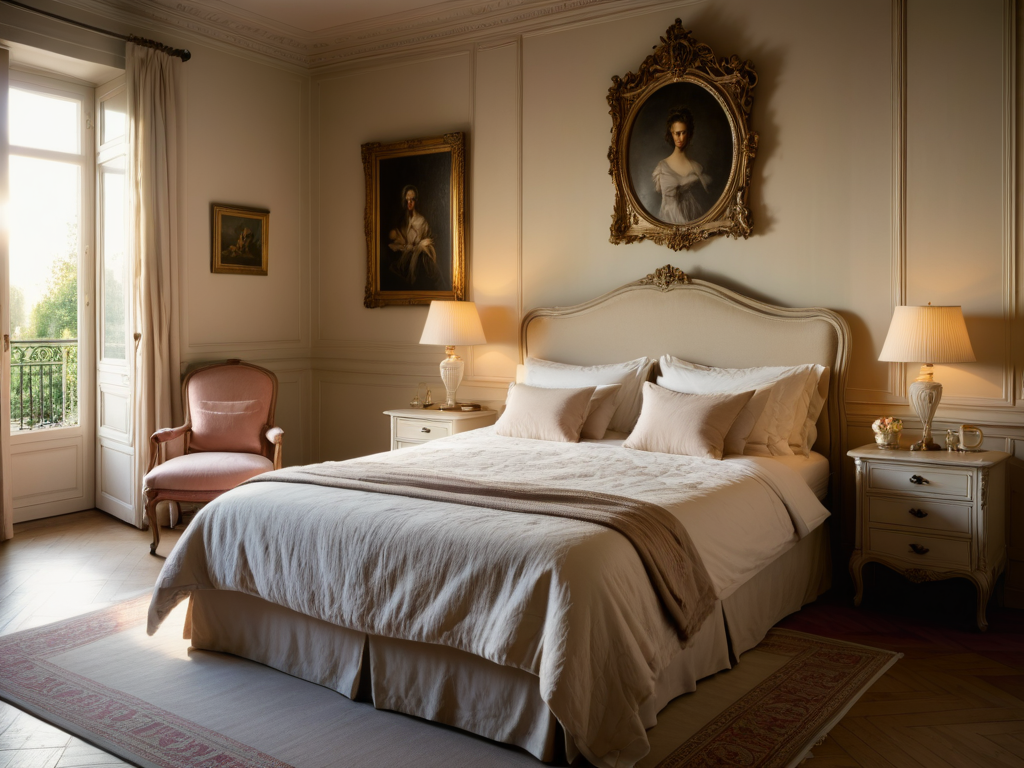 在照明方面,田园风格卧室通常采用柔和的灯光,营造出温暖的氛围。可以选择一些造型独特的吊灯或台灯,灯具的材质可以是铁艺或木质,增加自然的感觉。同时,窗户的设计也很重要,尽量选择大窗户,让自然光线充分进入,增强空间的通透感。