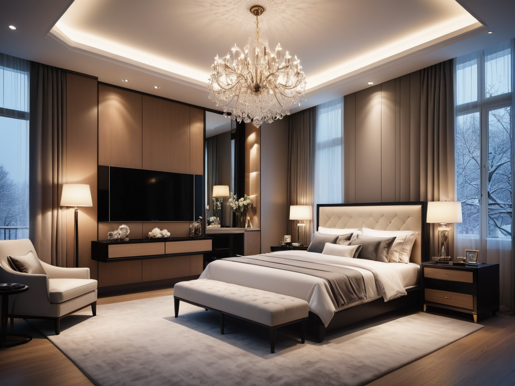 3. **照明设计**:挑空客厅的照明设计尤为重要。可以选择吊灯、壁灯等多种照明方式,既要满足日常照明需求,又要营造出温馨的氛围。