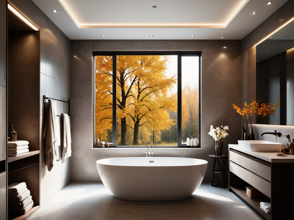卫生间的照明设计应考虑功能性和美观性。首先,主灯应选择光线柔和且足够明亮的光源,以方便日常使用。其次,镜子旁边可以增加局部灯光,以提供更清晰的照明。此外,选择防水的灯具是非常重要的,可以有效避免因潮湿而导致的安全隐患。