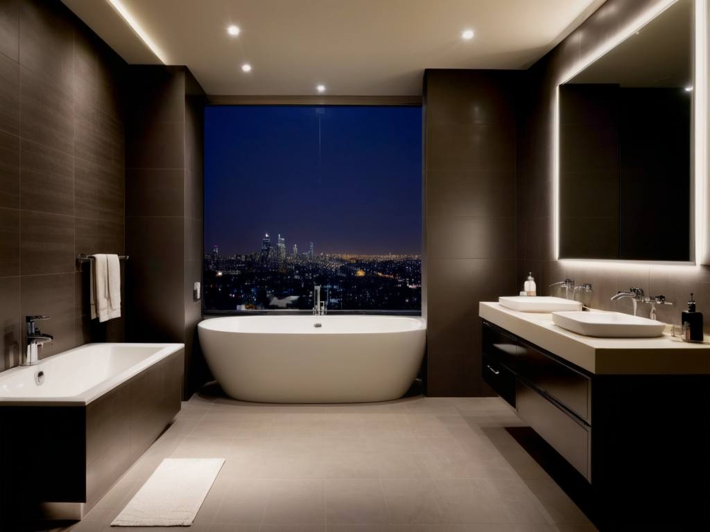 5. **奢华风格**:奢华风格的卫生间装修效果图,通常会使用高档的材料,如大理石、金属和玻璃,营造出一种华丽的氛围。卫浴设施往往设计精美,配以豪华的灯具和装饰,给人一种高贵、典雅的感觉。这种风格适合追求生活品质的人。