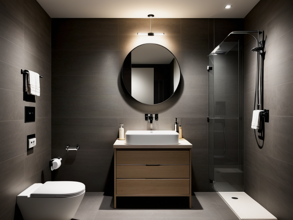 灯光设计同样重要。卫生间的灯光应以明亮为主,确保在洗漱时有足够的光线。同时,可以通过不同的灯具和灯光布局,营造出不同的氛围。例如,在洗澡区可以选择柔和的灯光,而在洗漱区则需要明亮的灯光。
