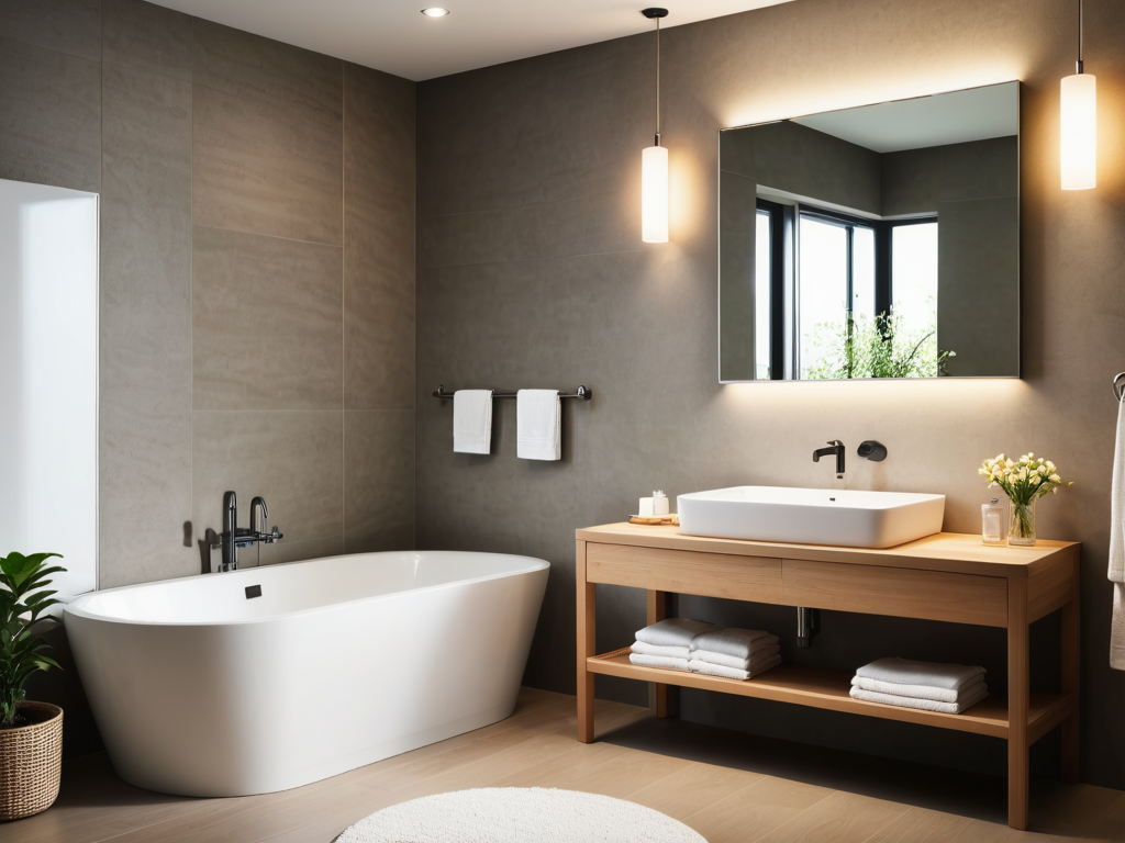 卫浴间的材料选择非常重要,因其需具备防水、防潮和易清洁等特性。常见的材料包括瓷砖、玻璃、天然石材和防水涂料。瓷砖是最常用的地面和墙面材料,因其多样的样式和颜色选择,同时防水性能优异。玻璃可以用于淋浴间的隔断,既美观又能有效防止水流外溢。天然石材如大理石、花岗岩等,虽然较为昂贵,但其独特的质感和耐用性也让其倍受青睐。