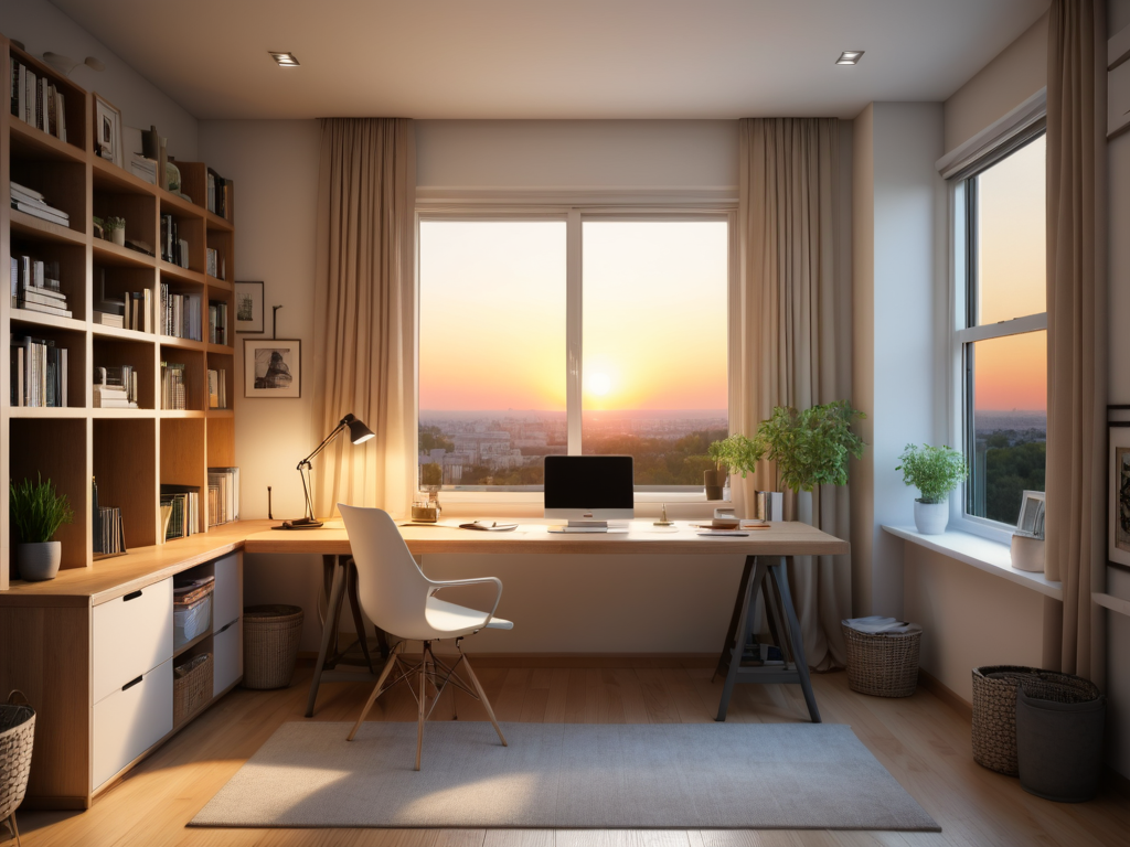 窗帘的选择可以考虑采用轻薄的材料,如纱帘,既能保证隐私,也能让光线透入,增加空间的通透感。颜色上可以选择与墙面相协调的浅色系,使整体看起来更为统一,避免沉重的感觉。