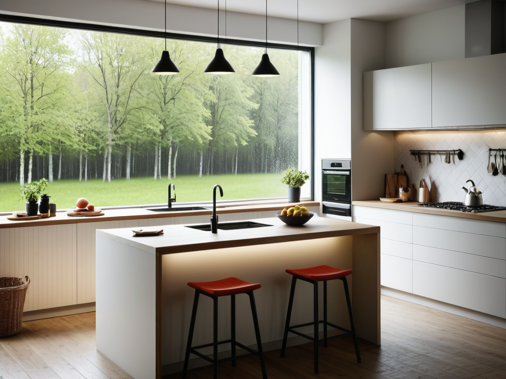 最后,现代风厨房的装修效果图还应考虑到环保和智能化的元素。随着人们对环保意识的提高,越来越多的家庭在装修时选择使用环保材料,如低甲醛的板材和水性涂料。此外,智能厨房设备的引入,如智能冰箱、智能烤箱等,不仅提升了厨房的科技感,也为日常烹饪带来了便利。