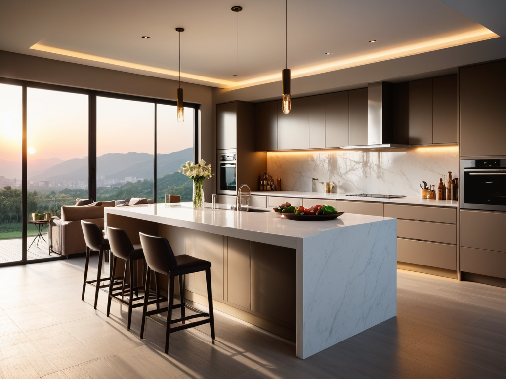 现代风格的照明设计应注重简约与功能性。可以使用线条简洁的吊灯、台灯或嵌入式灯具。建议采用可调光的灯具,以便根据不同的场合和氛围进行调整。同时,要注意自然光的引入,尽量选择大面积的窗户。