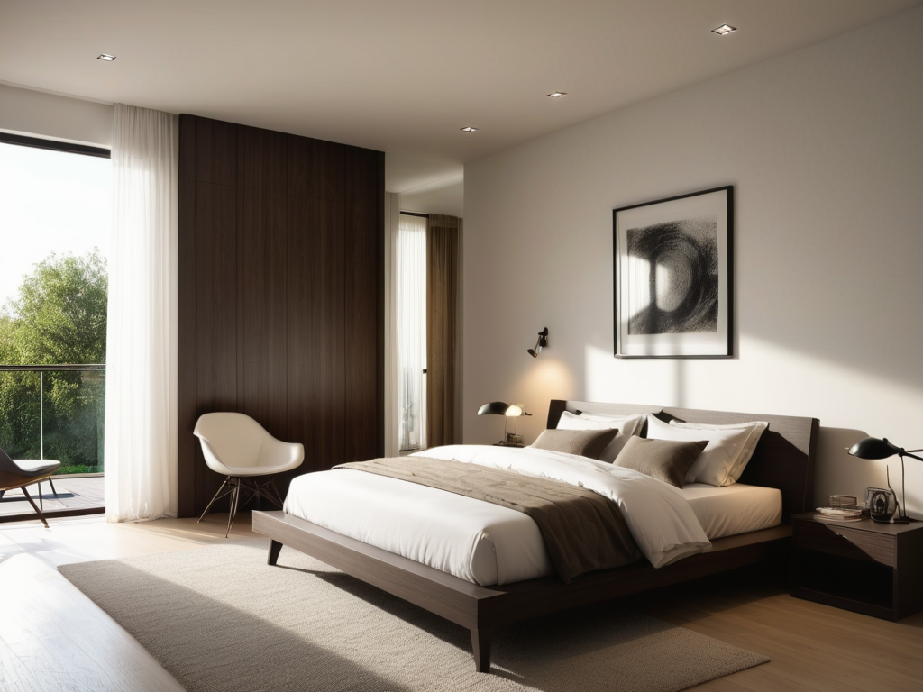 现代风格的灯光设计通常采用多层次的照明方式,包括主灯、辅助灯和装饰灯。主灯可选择简约大方的设计,辅助灯可以用轨道灯或嵌入式灯具,来照亮局部区域。而装饰灯如台灯或落地灯,则可以增加空间的温馨感和氛围。另外,灯光的色温选择也应偏向暖色调,以创造舒适的居住环境。