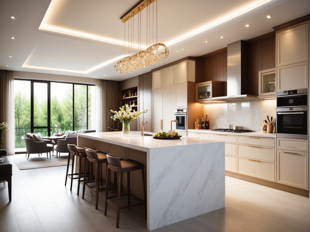 现代简欧风格强调空间的开放性和实用性,可以通过选择适当的家具和布局来优化空间利用。例如,使用多功能家具如沙发床或可扩展餐桌,增加使用灵活性。同时,尽量保持地面的空旷,避免堆放过多的杂物,保持空气流通和视觉的开阔。