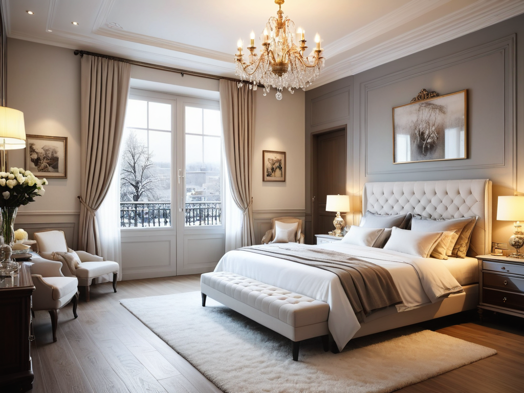 在现代简约风格的卧室设计中,常见的设计元素包括自然光的引入、简约的窗帘、以及适量的绿植装饰。大窗户能够让自然光充分照射进来,增加空间的通透感。窗帘的选择上,通常以轻薄的材质为主,既能保证隐私,又不会遮挡光线。适量的绿植不仅能够增添生气,还能改善室内空气质量,提升居住的舒适度。