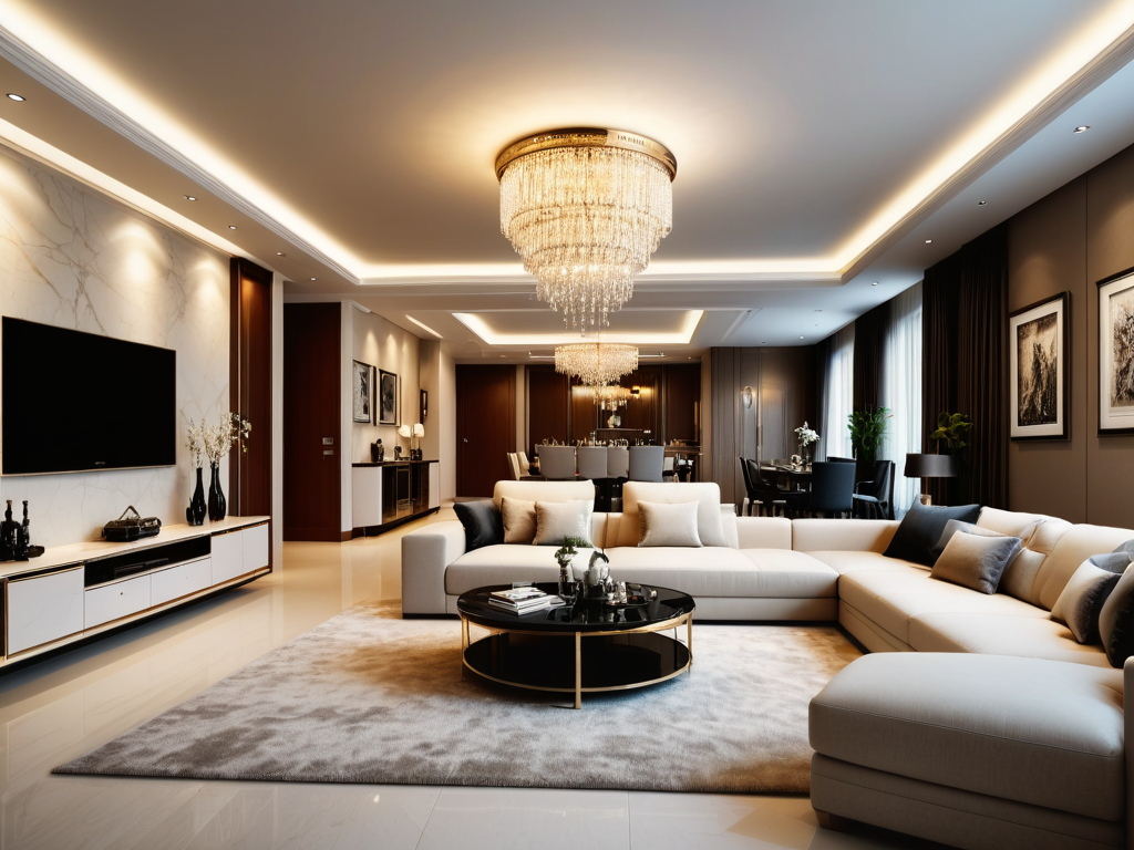 在现代简约客厅设计中,空间布局是至关重要的。设计师通常会选择开放式的布局,使客厅与餐厅、厨房等区域无缝连接,增强空间的流动感。家具的选择上,简约风格强调线条的简洁和功能的多样性。常见的家具包括低矮的沙发、简约的茶几和多功能的储物柜,这些家具不仅美观,还能有效利用空间。