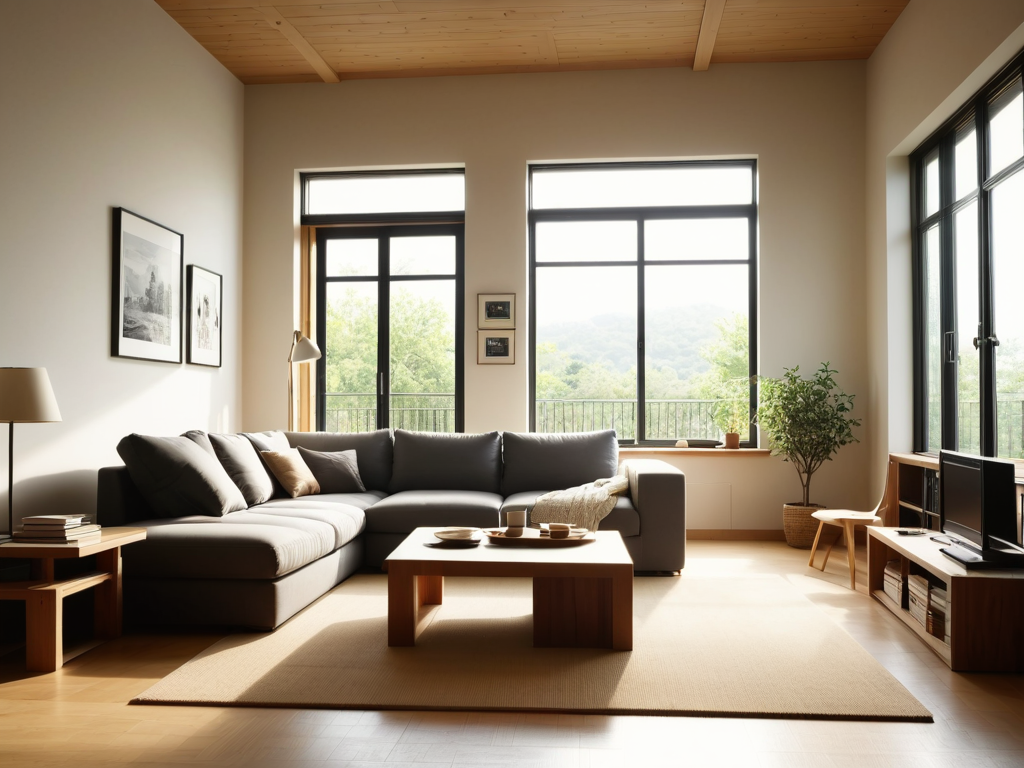 - **家具**:家具设计简约,线条流畅,功能性强,常见的有简约的沙发、木质餐桌等。