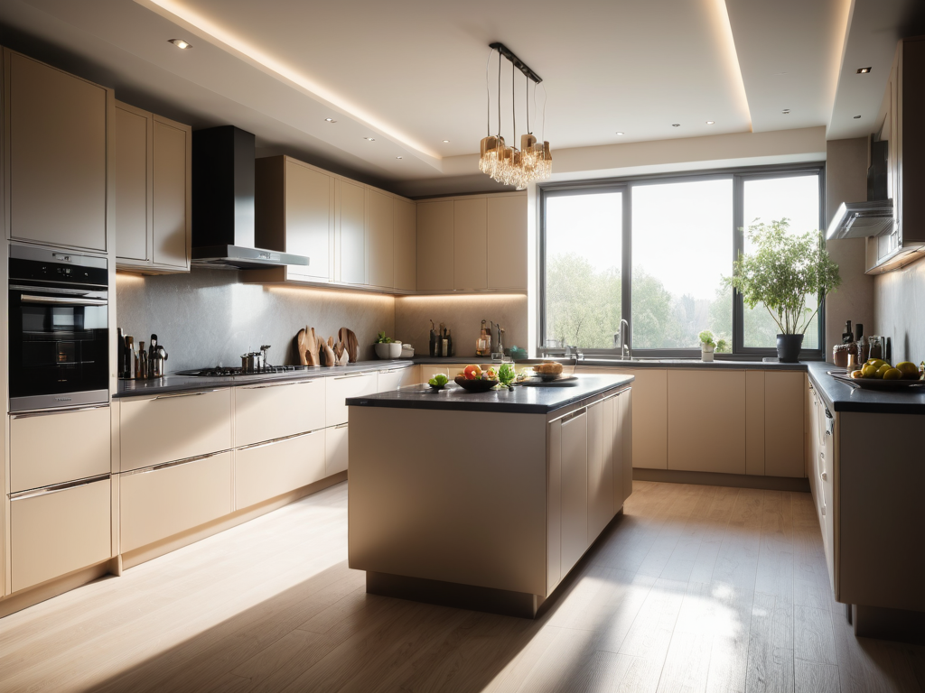 在现代简约风格中,照明设计非常关键。应选择简洁流线型的灯具,聚焦于功能与美感。可以使用嵌入式灯具或轨道灯来增强空间感,同时也要注重自然光的引入,确保室内明亮且舒适。