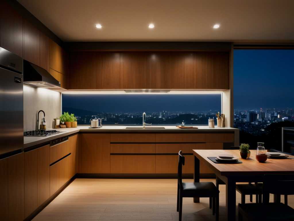 灯光设计在现代简约装修中非常重要,建议使用简约风格的灯具,避免复杂的水晶吊灯等。照明应采用分层设计,包括主光源、局部照明和装饰照明,以满足不同功能需求。同时,灯光色温应偏向暖色调,营造温馨舒适的氛围。