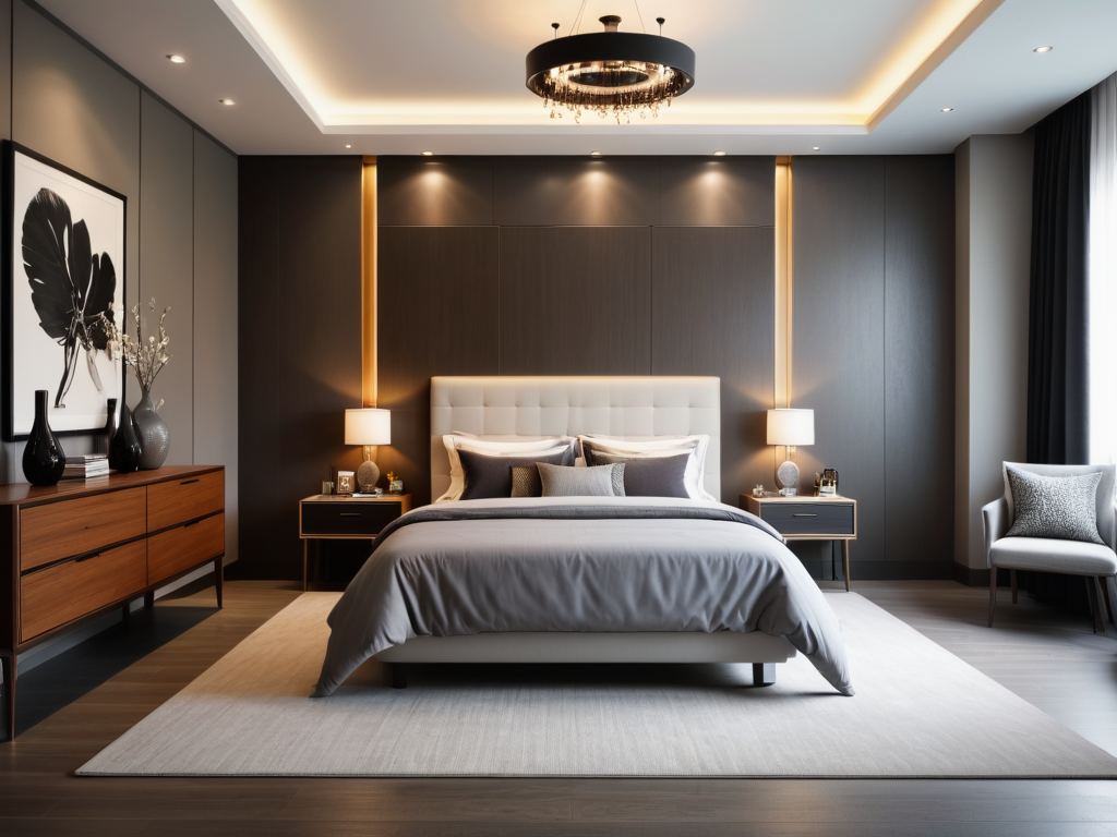 光线在现代简约装修中起到至关重要的作用。可以通过大窗户或落地窗引入自然光,增加空间的通透感。室内照明方面,可以使用嵌入式灯具、吊灯等,创造多层次的光源,避免单一的照明设计。此外,使用镜子反射光线也能有效增加空间的明亮度。