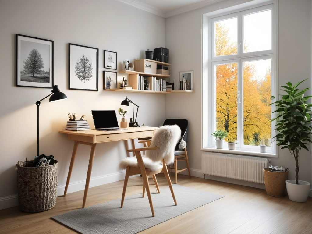 2. **家具选择**:现代简约风格的家具设计通常以简洁的线条和功能性为主。选择一些多功能的家具,如沙发床、折叠餐桌等,可以有效节省空间。同时,家具的材质也应以自然、环保为主,如实木、布艺等,既美观又舒适。