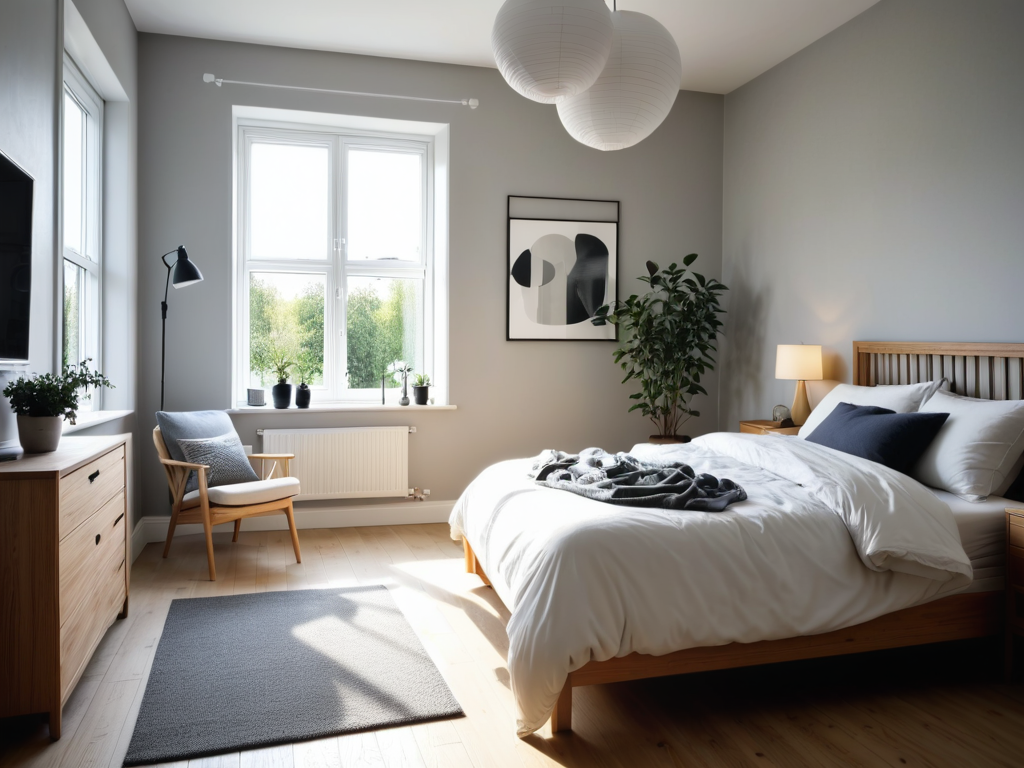 在现代简约装修效果图中,灰色的运用可以体现在墙面、地板、家具以及装饰品等多个方面。墙面使用浅灰色可以使空间显得更加开阔,而深灰色则能够增加空间的层次感和深度。地板选择灰色调的木地板或瓷砖,既能保持整体风格的一致性,又能增加空间的温暖感。家具方面,灰色沙发、餐桌等不仅时尚,还能与其他色彩的装饰品形成良好的对比,突出空间的设计感。