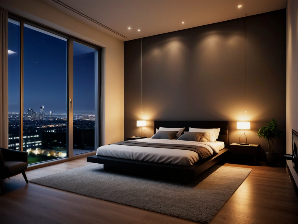 灯光在现代简约装修中起着重要的作用。合理的灯光设计可以提升空间的层次感和氛围感。可以选择嵌入式灯具、吊灯或落地灯等,营造出不同的光影效果。此外,装饰品的选择应以简约为主,适当的绿植、艺术画作或简约的挂件都能为空间增添生机。