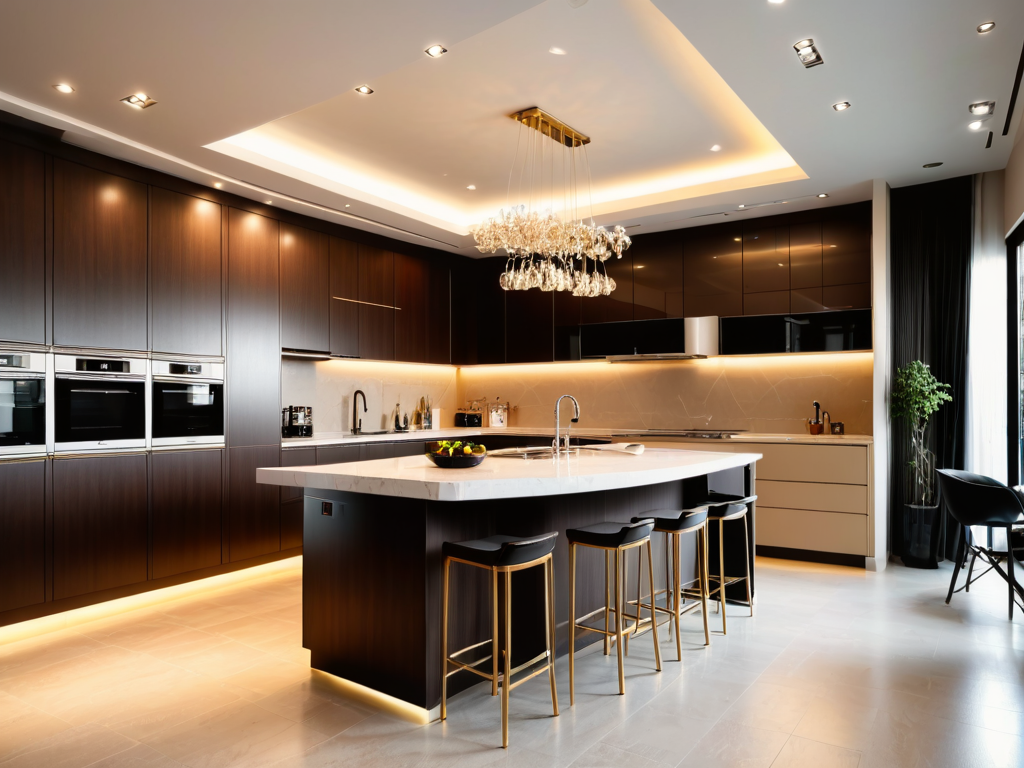 现代客厅的灯光设计应注重功能与氛围营造。首先,应选择主灯光源,通常为吸顶灯或吊灯,提供基础照明。其次,可以通过增加辅助照明,如落地灯、壁灯等,来营造不同的氛围。此外,灯光的色温选择也很重要,暖色调灯光更能创造温馨的家庭氛围,而冷色调则适合现代简约风格。