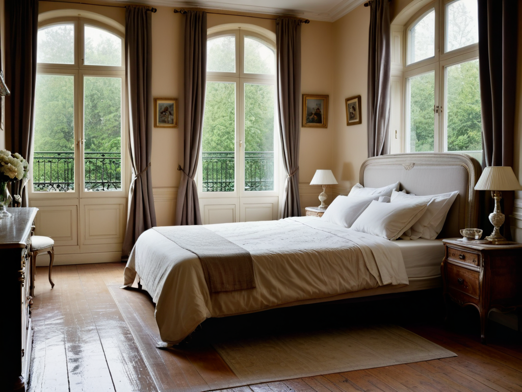 2. **床品搭配**:床品的选择上,现代美式卧室常用柔软的棉麻材料,色彩上则以素雅为主,搭配一些简单的图案,既能提升卧室的舒适度,又不会显得过于繁杂。