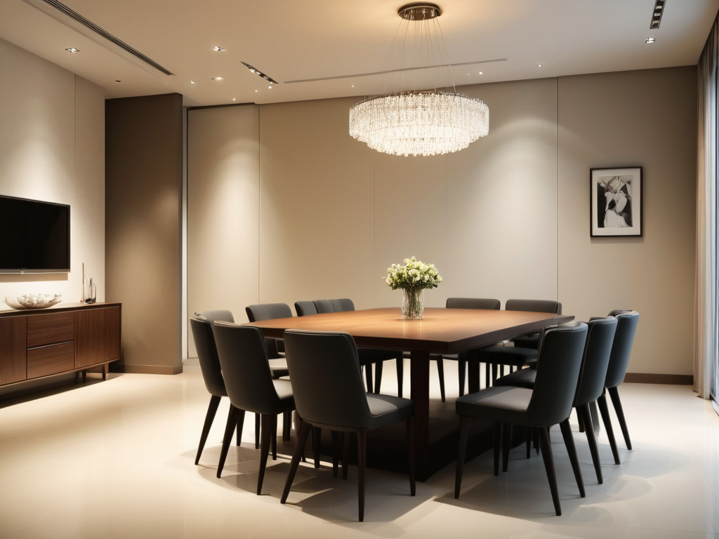 照明在现代欧式风格中至关重要,通常应选择简洁而优雅的灯具,以突出空间的层次感。可以采用层次化的照明设计,如主灯、辅助灯和氛围灯的结合,确保光线的柔和与均匀,同时还应考虑到灯的风格与整体装饰的协调性。