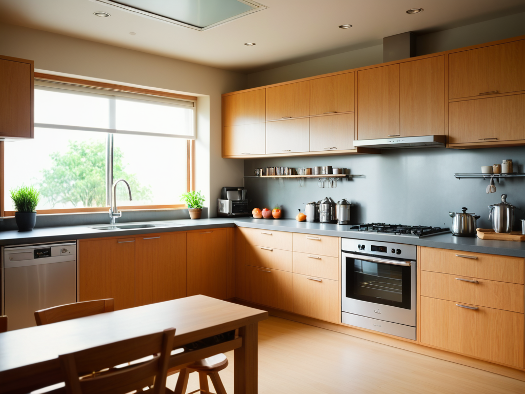 其次,色彩和材质的选择也至关重要。小户型的开放式厨房通常需要选择明亮的色彩,以增强空间的通透感。白色、浅灰色或米色等浅色调能够有效反射光线,使空间看起来更加宽敞。此外,选择光滑的材质,如不锈钢、玻璃或高光面板,可以增加现代感和时尚感。